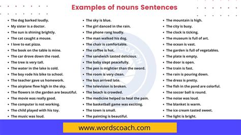 5 noun sentence examples