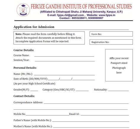 admission form sample word