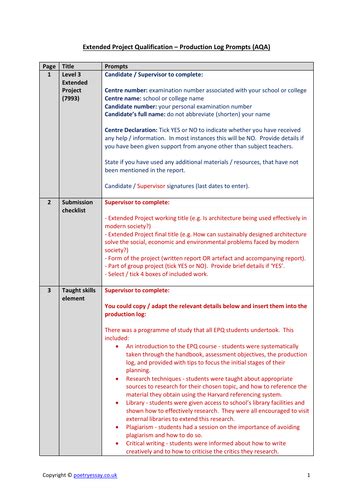 aqa epq production log example pdf