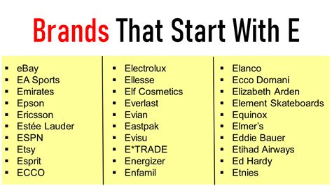 brand name start with e