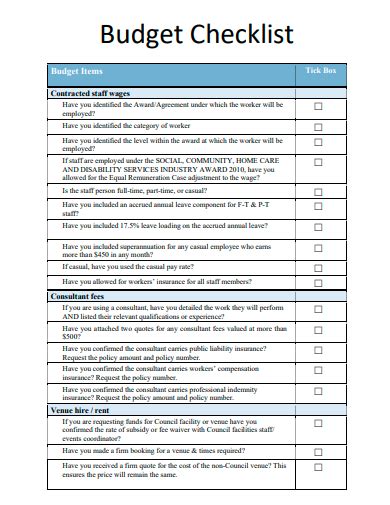 budget checklist template free