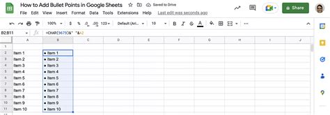 bulleted list in google sheets