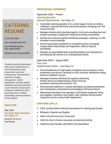 catering cv examples