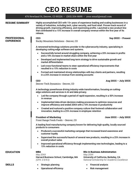 ceo profile sample in word