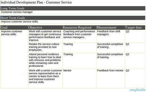 customer service individual development plan examples