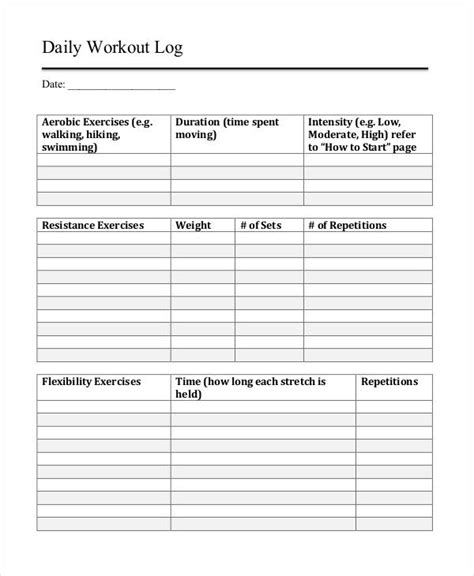 daily workout log pdf