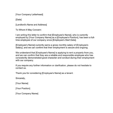 employer rental reference example
