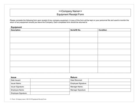 equipment receiving form template word
