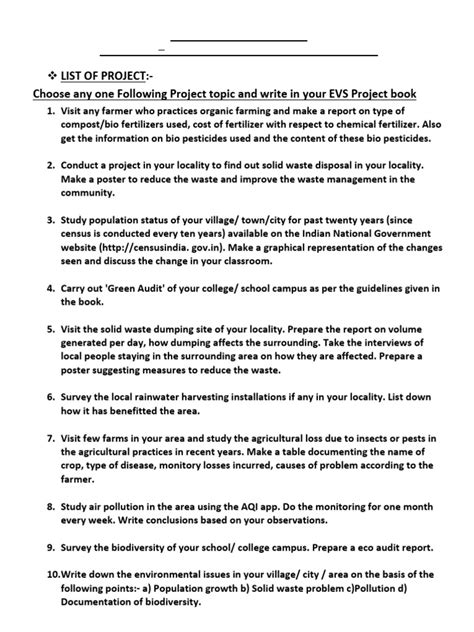 evs project topics for class 12 pdf in english