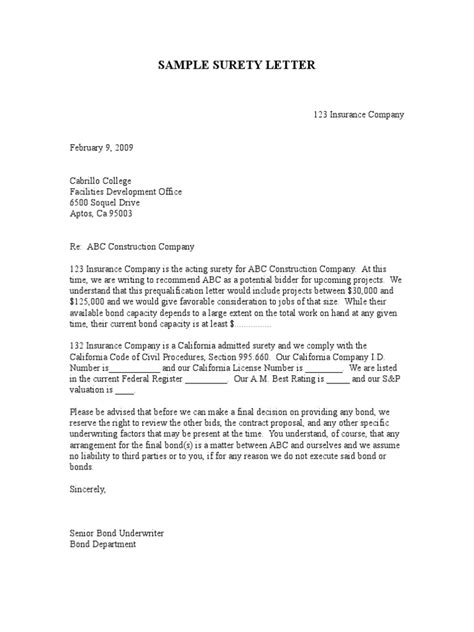 example of surety letter