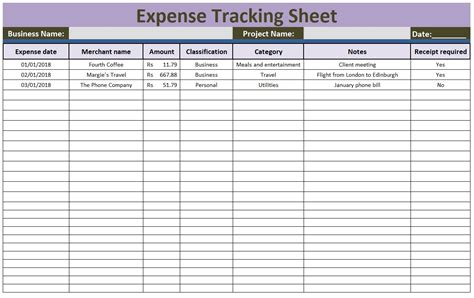 expense tracking sheet example