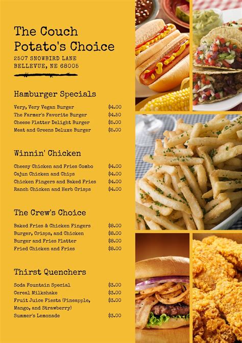 fast food dinner menu