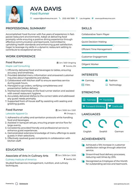 food runner resume examples