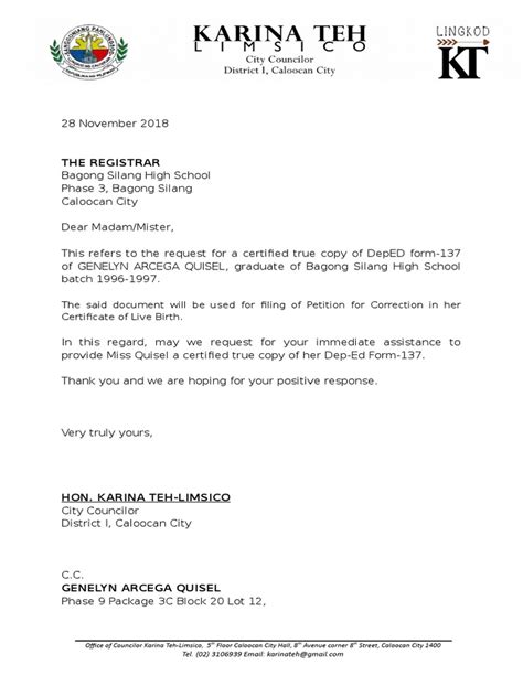 form 137 request letter sample