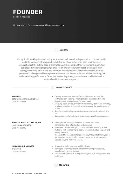founder resume sample