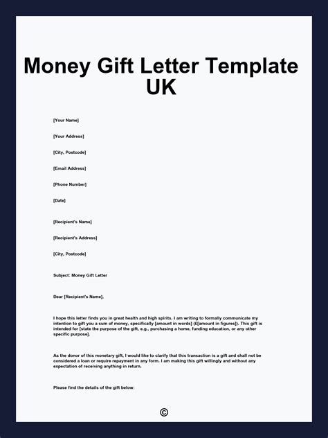 gift money template uk