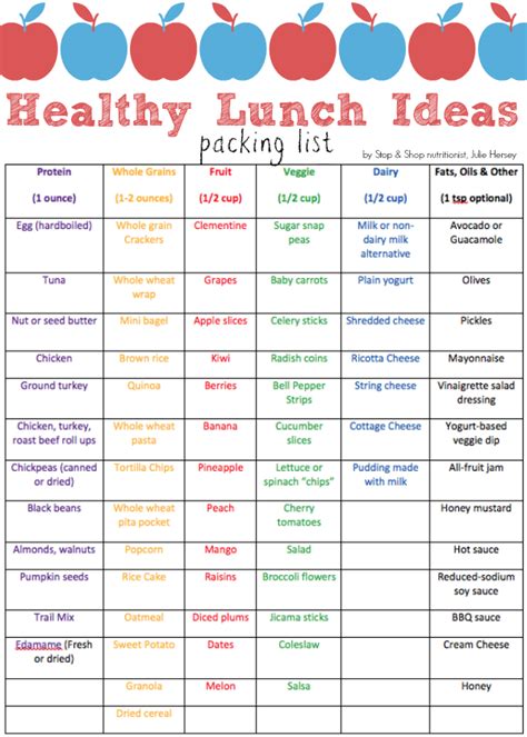 healthy lunch menu list