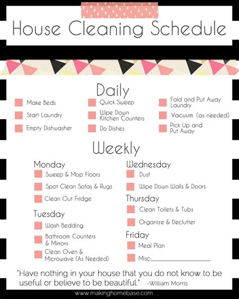 home cleaning schedule checklist