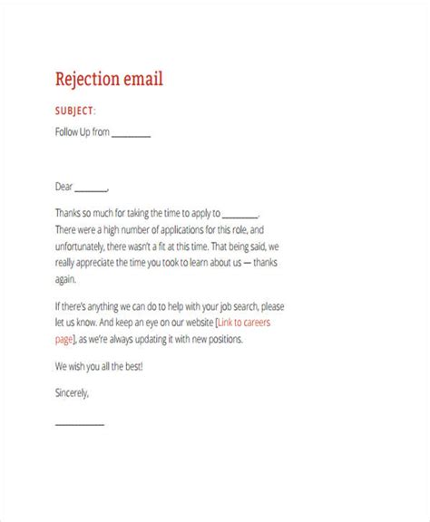 how to write a formal rejection email
