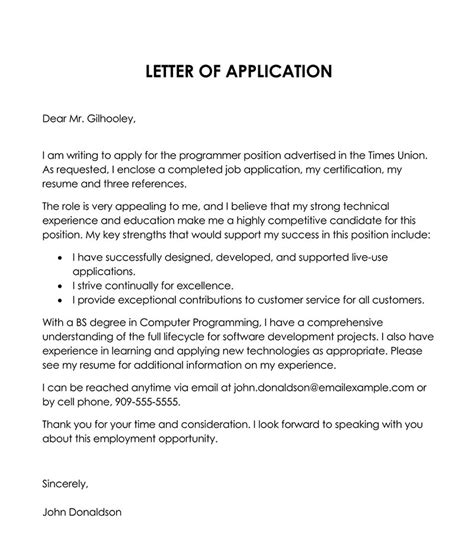 how to write an application letter for a job interview
