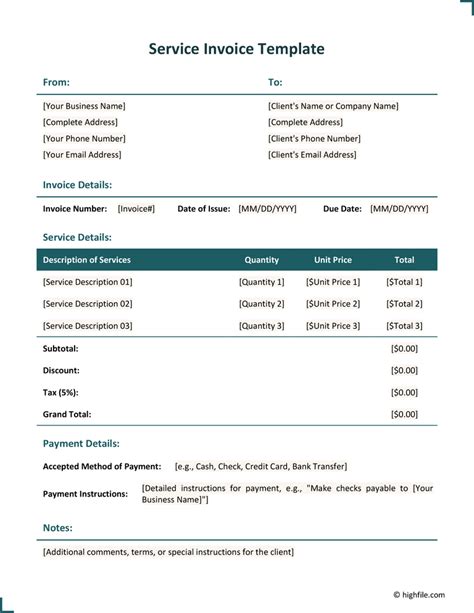 how to write an invoice for services