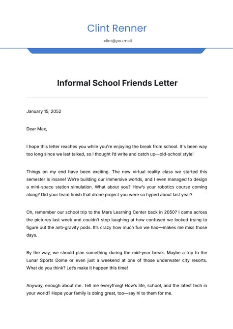 how to write informal letter to your friend in another school
