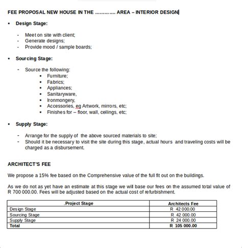 interior design fee proposal template free