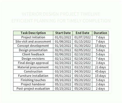 interior design timeline example