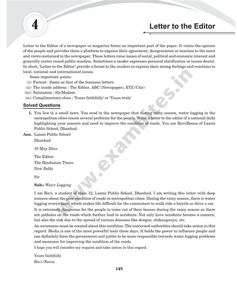 letter to editor format class 12 pdf