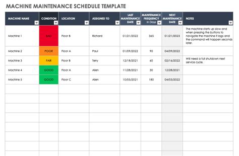 machine maintenance chart format