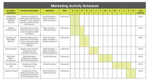marketing activities schedule