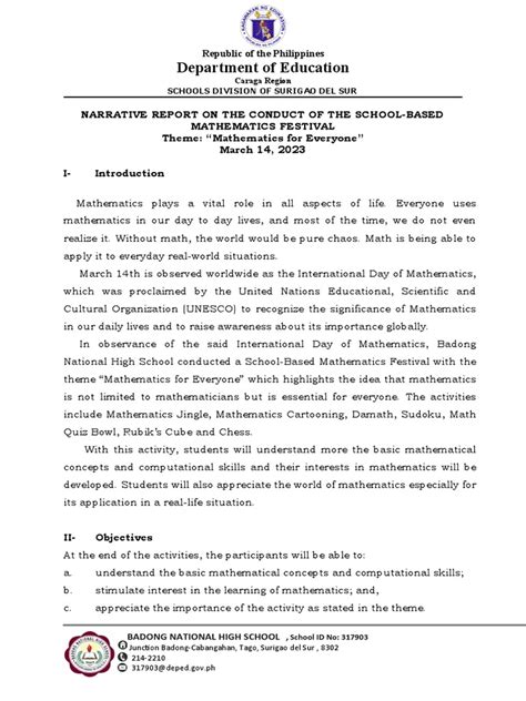 national mathematics program narrative report sample pdf