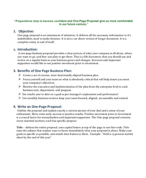 one page business proposal example