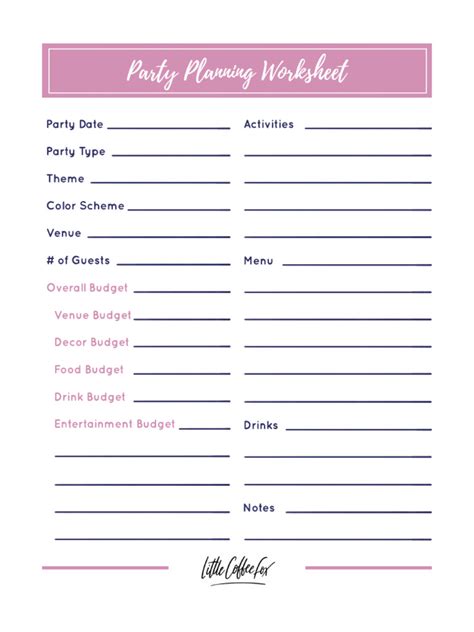 party planning worksheet pdf