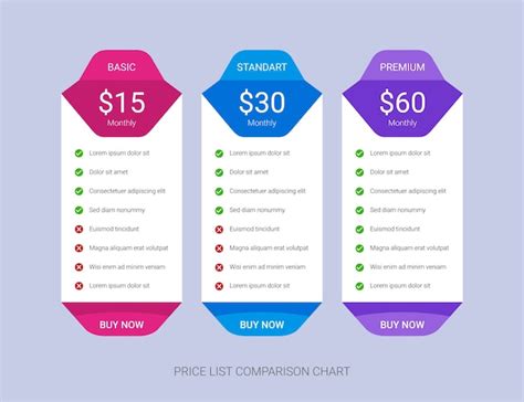 price comparison table template