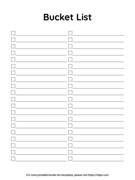 printable bucket list template pdf