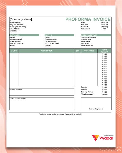 proforma invoice sample format in excel