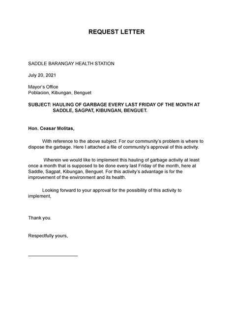 request letter sample for barangay