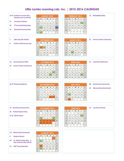 sample school calendar