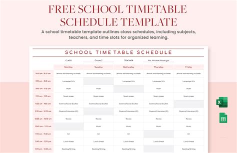 school timetable template excel