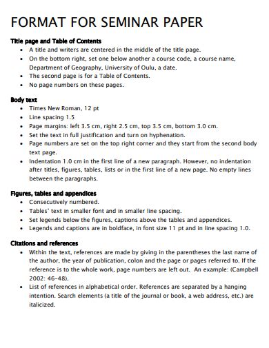 seminar format example for students