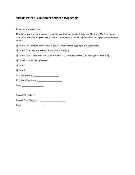 simple agreement letter sample doc