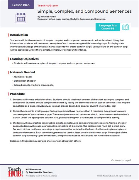 simple compound and complex sentences lesson plan pdf