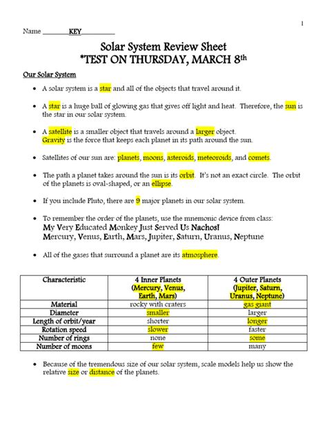 solar system review