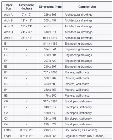 standard engineering drawing paper sizes