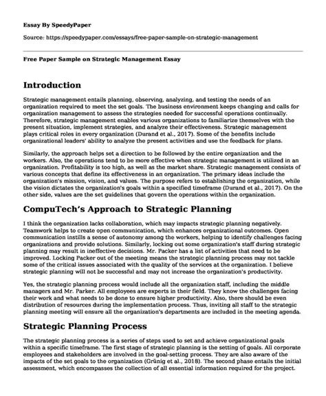 strategic management paper examples