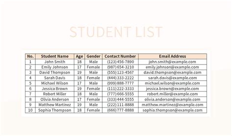 student name list excel