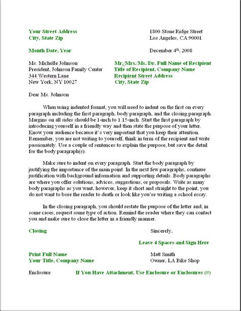 style letter writing examples