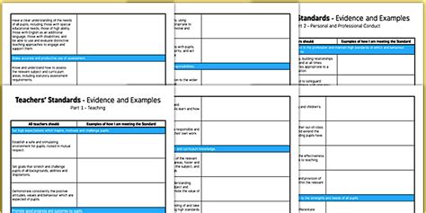 teacher standards word document template