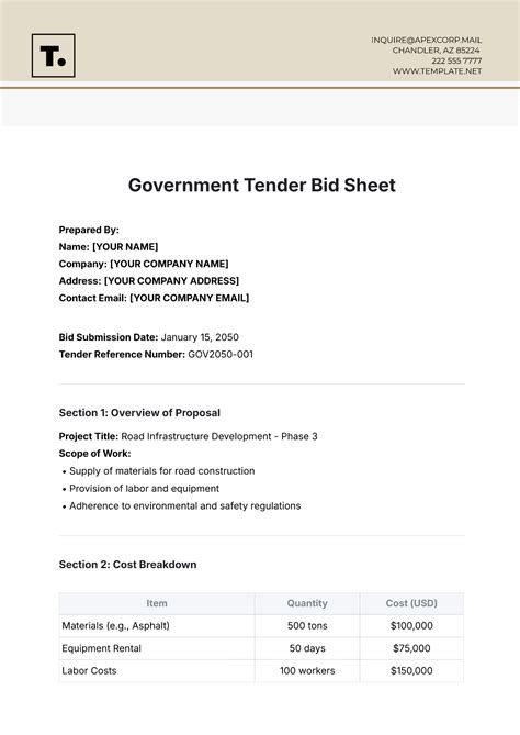 tender bid document template